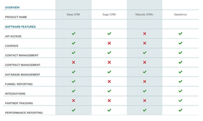 Get a side-by-side comparison of your shortlisted CRM solutions with this free CRM software comparison. Download your CRM comparison matrix in an easy to read PDF to access later.