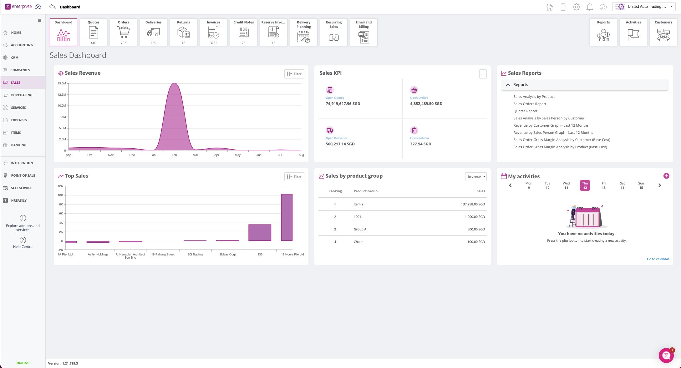 Get an all-in-one cloud software with CRM, service, accounting, and banking to streamline your business activities. Enterpryze is a revolutionary platform for growing SMEs looking to modernize and simplify business processes. They help SMEs by providing a fully integrated business management system (inventory, finance, sales, CRM, stock management, manufacturing, distribution, scheduling, expenses, reporting, services, etc.) securely in the cloud.