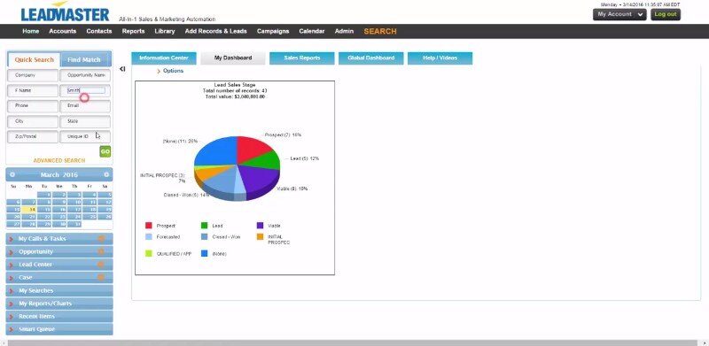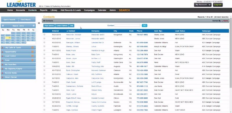 LeadMaster CRM focuses on an all-in-one approach to sales and marketing software, customer contact services, and lead generation integrated with analytics and web-based surveys.
