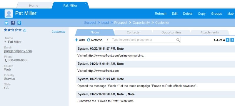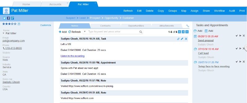 Soffront CRM is a customizable system that aims to automate the sales, service, and project aspects of small to mid-sized businesses.