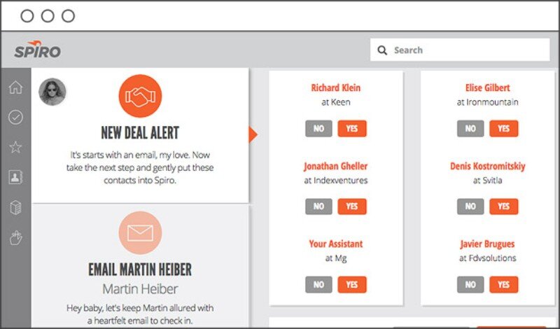 Spiro automatically creates contacts, organizes and prioritizes opportunities, and proactively recommends the next steps to move all your team's deals forward. Spiro takes the work out of sales and provides managers with intelligent sales reports that help turn their sales team into a sales machine.